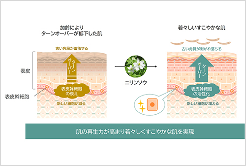 「ニリンソウ」が肌の再生力を高め若々しい状態に導くことを発見~表皮幹細胞の活性化により加齢に伴い低下するターンオーバーを改善~
